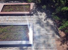 На фотографиях ниже видно промежуточное состояние места захоронения после укладки наземного покрытия и восстановления цветника.