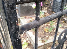 На могиле в первую очередь мы занялись оградой. Обожгли старую краску. В этот раз обжиг занял больше времени. Пришлось жечь ее в два захода.