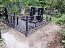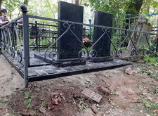 В данном заказе нам предстояло полностью благоустроить место захоронения. Клиент пожелал заменить на участке всё, кроме ограждения. Нам предстояло изготовить два классических гранитных памятника с прямоугольными цветниками, а также выложить территорию могилы брусчаткой. Первым делом мы приехали на кладбище и оценили исходное состояние места захоронения: оно поросло сорняком, а потому выглядело заброшенным.